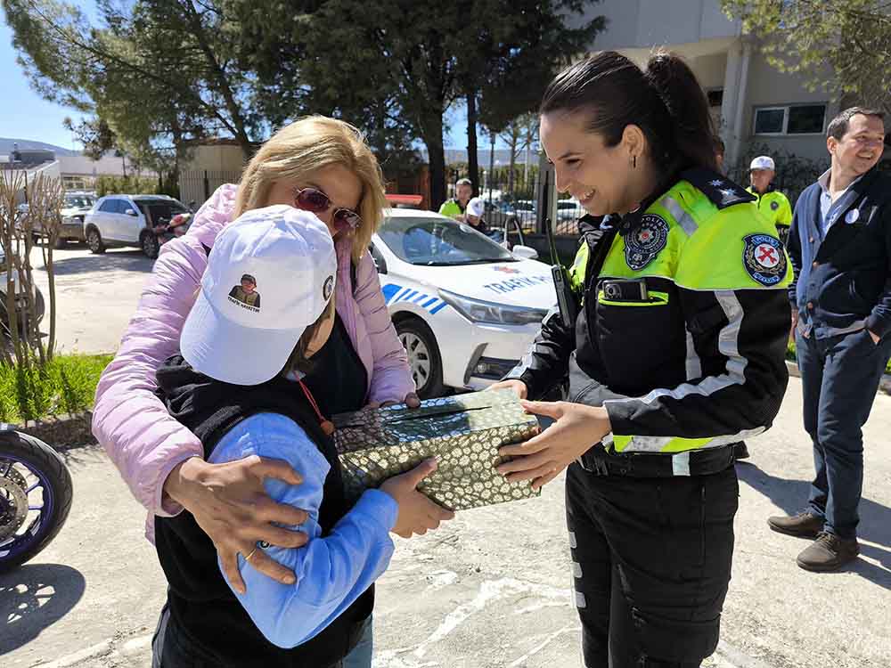 Farkındalık ve duyarlılık oluşturmak, amacıyla ilçe emniyet müdürlüğü Personelleri Trafik ekip aracı ve motosikleti deneyimlemiş, siren basan ve anons eden down sendromlu bireylere Trafik Şapkası, Düdük, Oyuncak Polis Arabası, Bebek, Trafik Dedektif Kartı dağıttı.