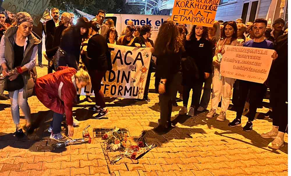 Muğla’nın Ortaca ilçesinde önceki gün kocası tarafından sokak ortasında silahla vurularak öldürülen Neşe Gülmüş’ün vurulduğu yerde Kadın cinayetleri protesto edildi.