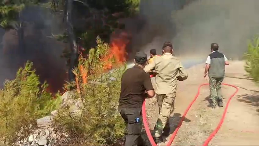 Bölgede bulunan tüm hava araçları yangın bölgesine sevk edilirken Karadan müdahale için 33 arasöz 16 su tankeri 5 dozer ve 271 personelle yangın bölgesinde alevlere karşı göğüs göğse mücadele başladı.. 40 derece sıcaklık ve Rüzgarı etkisi ile kısa sürede ormanlık alana yayılan alevlere Havadan 10 helikopter 8 uçakla müdahale edildi. Alevler saat 19.30 sularında kontrol altına alındı.