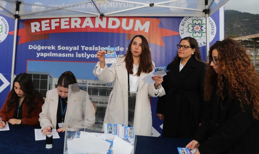 Muğla Büyükşehir Belediyesi, Menteşe ilçesindeki Düğerek Sosyal Tesisleri ve Spor Salonu’nda düğün yapılıp yapılmaması konusunu halka sordu. 2 gün boyunca yapılan referandumda bin 84 kişi oy kullandı ve 990 oy ile tesisin düğün organizasyonları için kullanılmasına “evet” denildi.