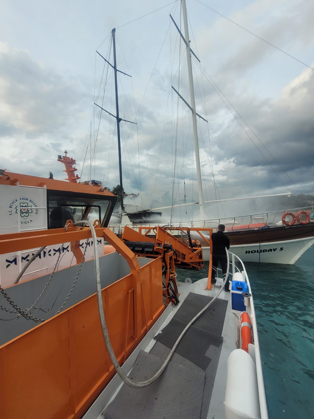 Fethiye Şövalye Adası’nda Holiday 5 isimli gulette yangın meydana geldi. Muğla Büyükşehir Belediyesi’ne ait “Muğla BB 3 “isimli acil müdahale teknesi yangına müdahale ederek söndürme çalışmalarında önemli bir rol aldı.